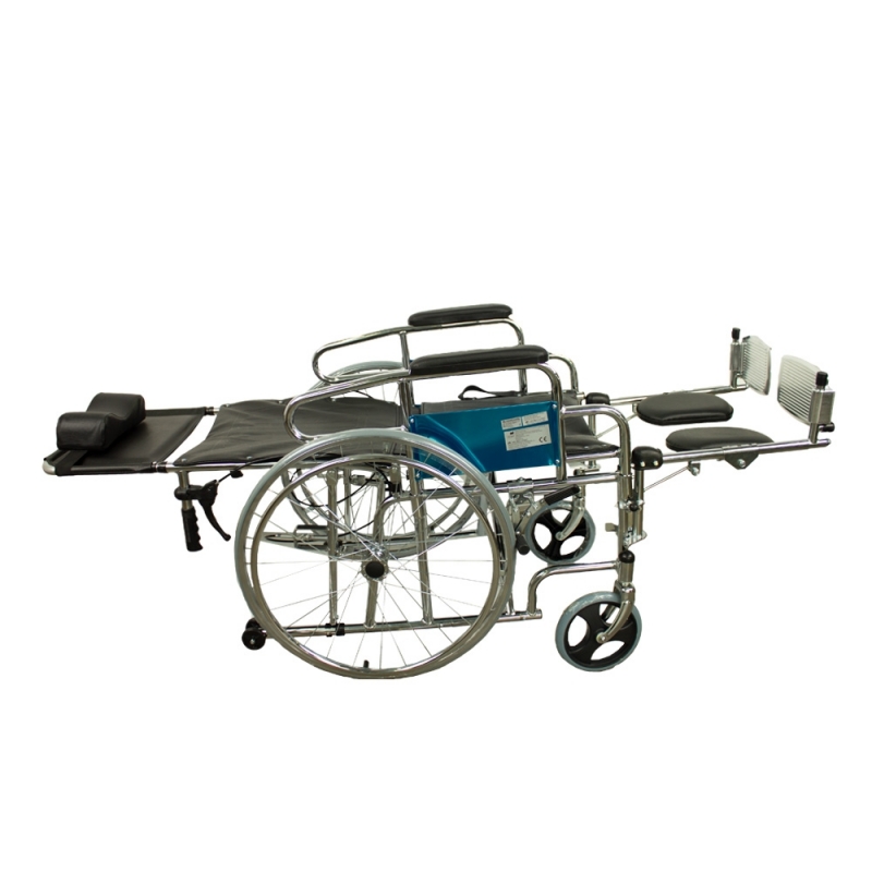 opvouwbare rolstoel in hoogte verstelbare beensteunen en hoofdsteun orthopedisch obelisco